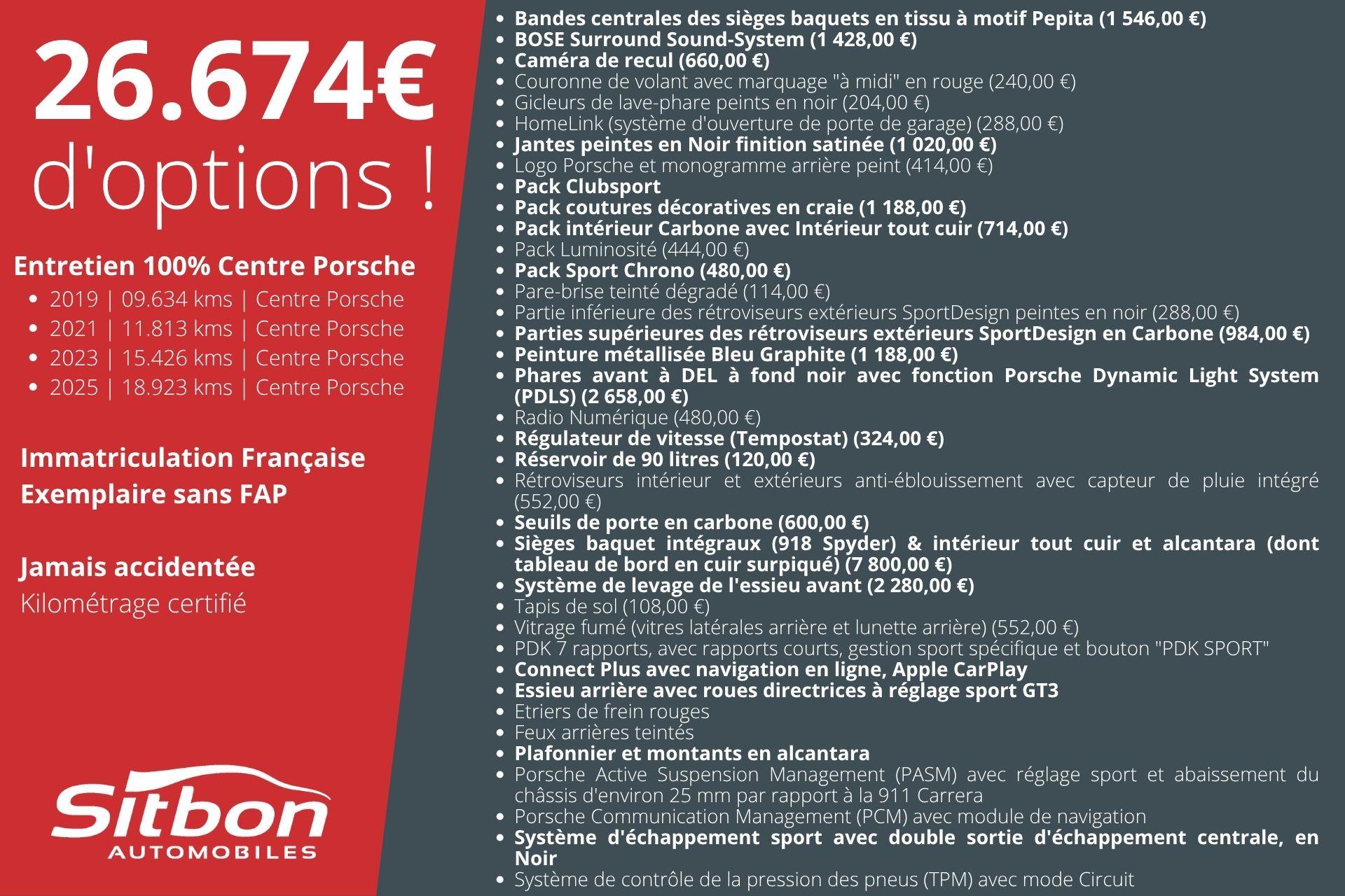 Historique d'entretien 100% dans le même Centre Porsche :