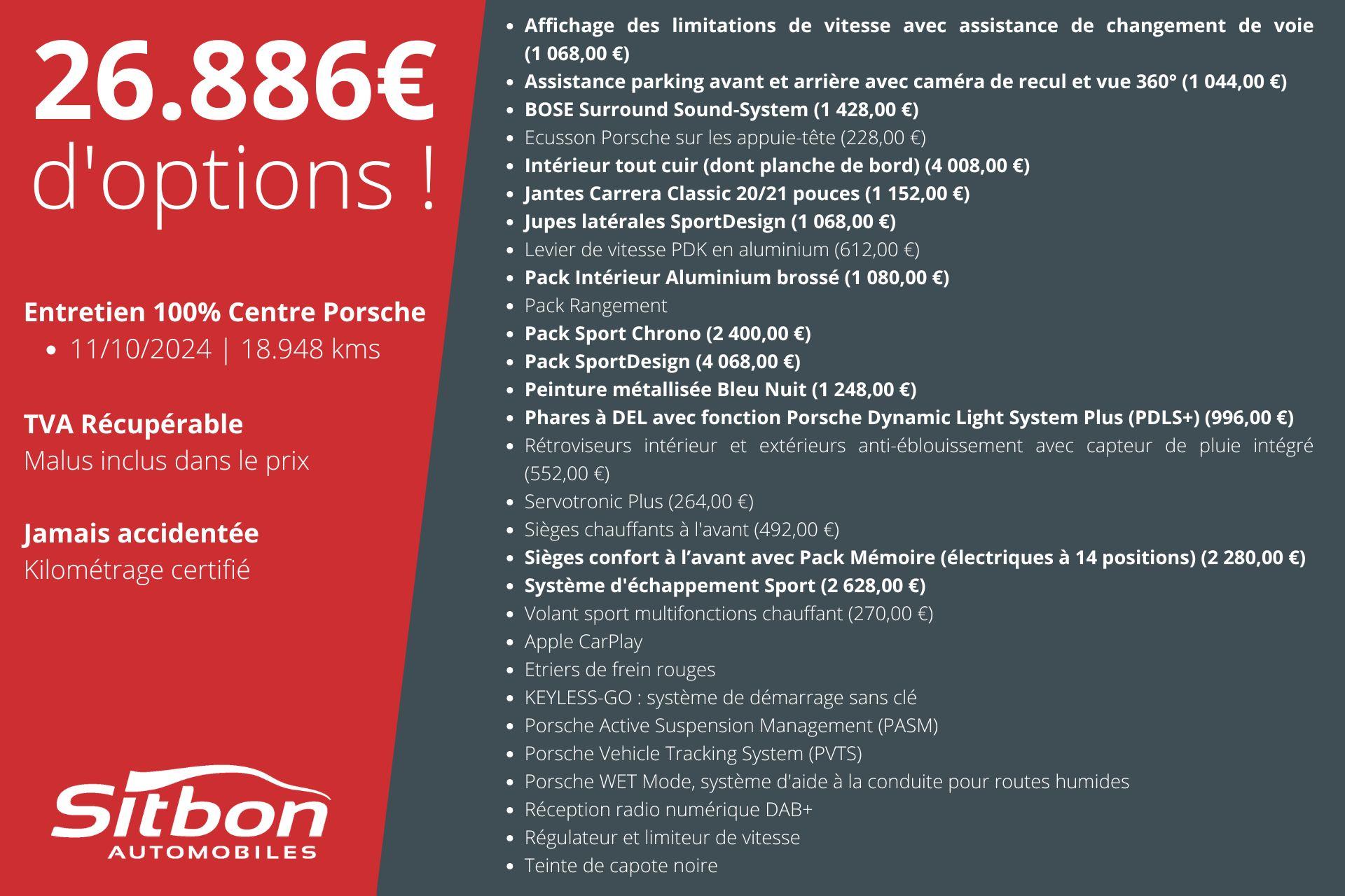 * Dernier entretien : 11/10/2024 | 18.948 kms | Centre Porsche