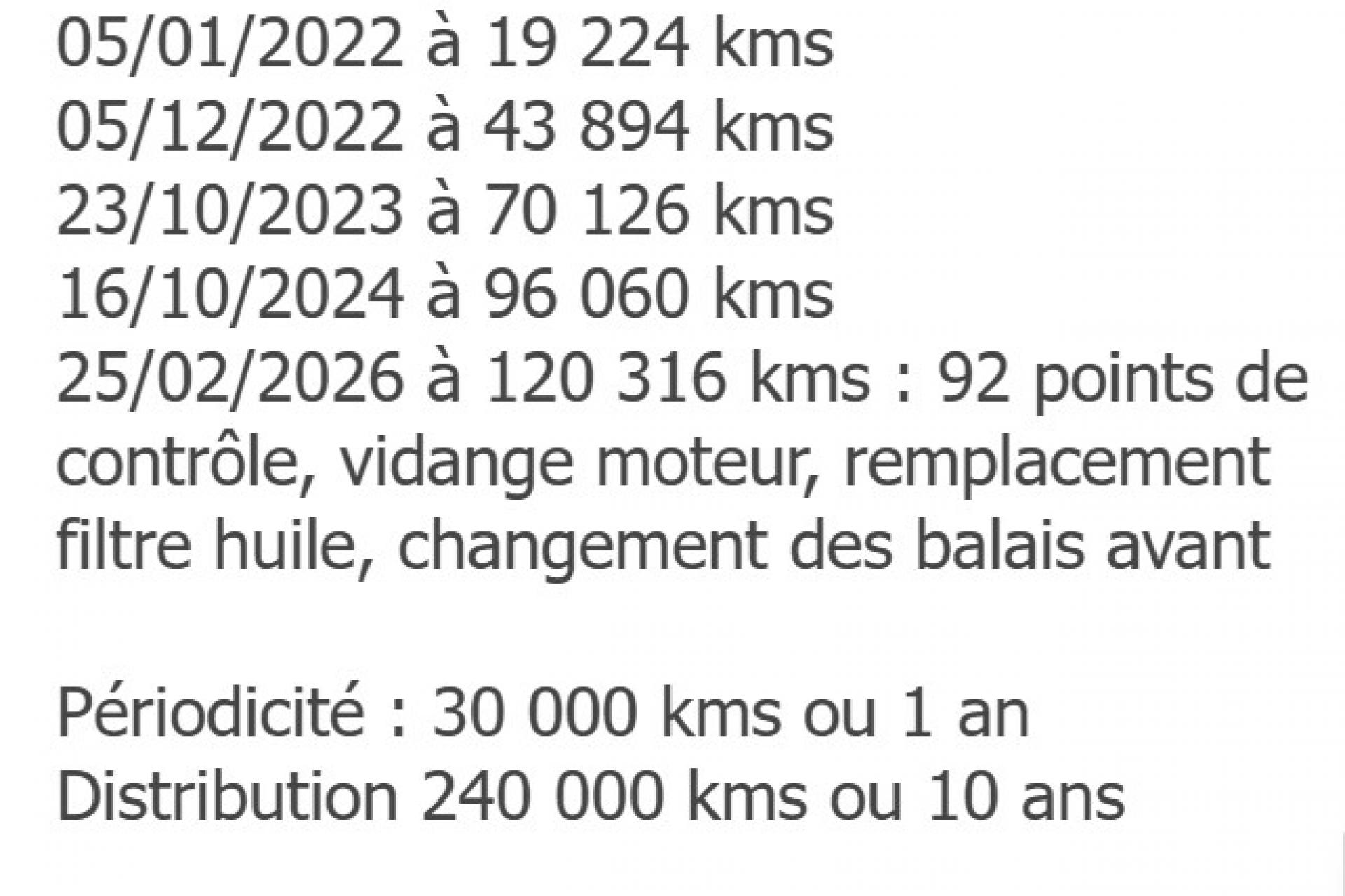 25/02/2026 à 120 316 kms : contrôle, vidange moteur, remplacement filtre huile, changement des balais avant